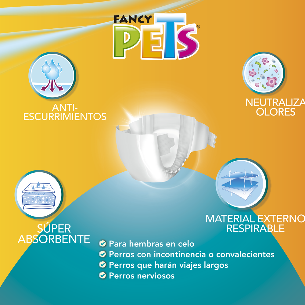 Prácticos pañales para usar y tirar, diseñados especialmente para el cuerpo de los perros. Son la solución perfecta para los perros ya viejos o con problemas de incontinencia, así ellos no se mojarán y no tendrás que limpiar a diario.