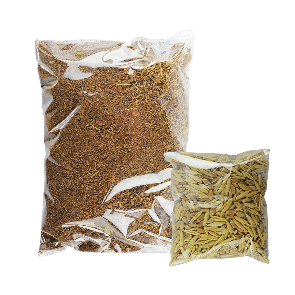 1 bolsa de semillas de trigo (Triticum aestuvum) y avena ( Avena sativia) (60g) con rendimiento para 3 siembras, 1 bolsa de sustrato de coco (500ml densidad no comprimida), 1 maceta.