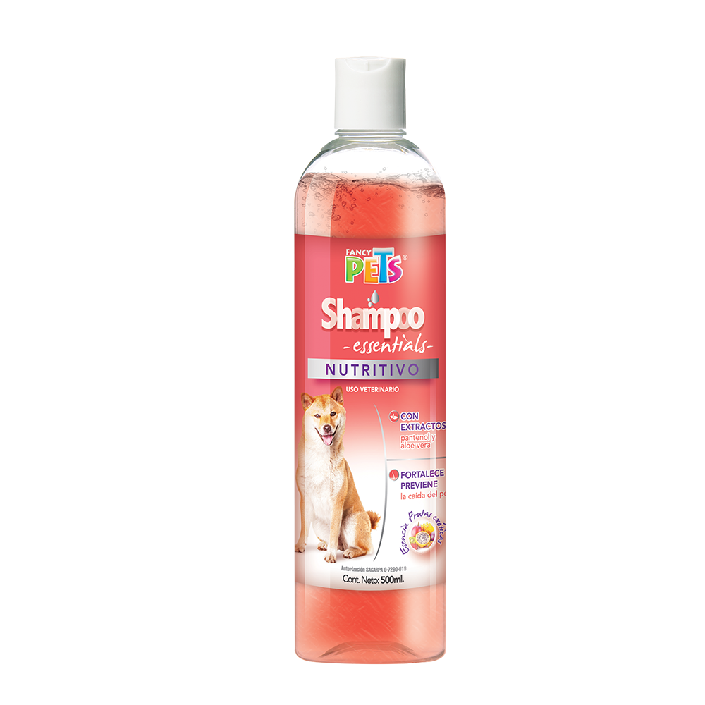 El Shampoo Essentials Nutritivo de Fancy Pets está formulado con pantenol, extractos de caléndula y aloe vera que nutren los folículos pilosos, promoviendo el crecimiento y salud del pelo.