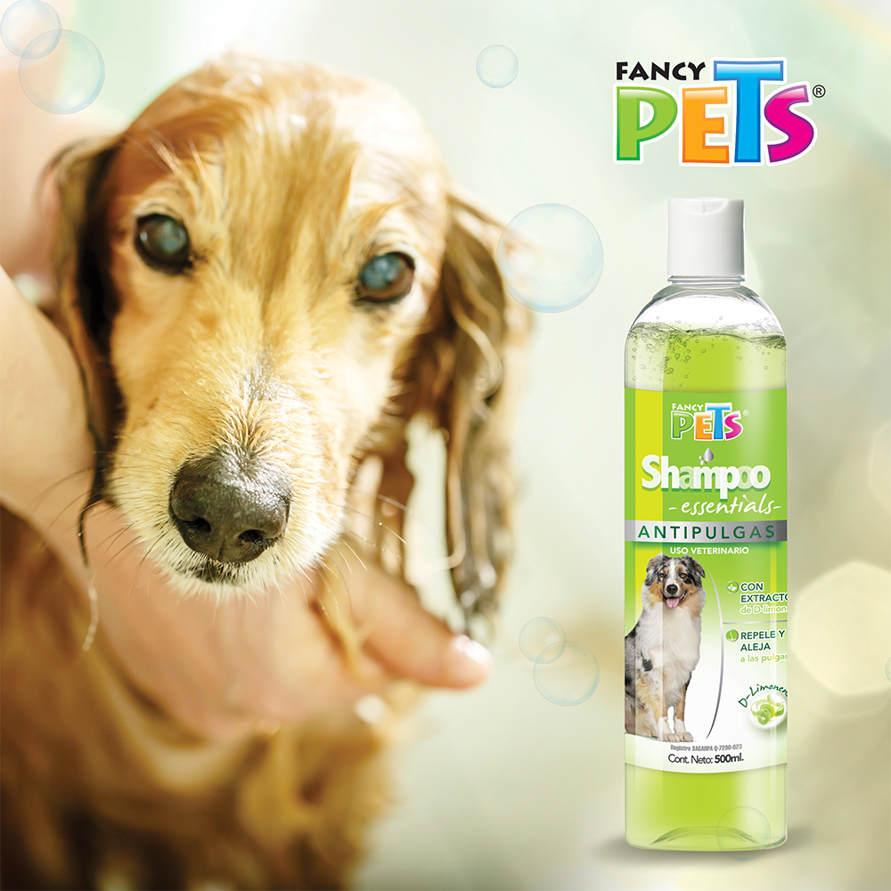 El Shampoo Essentials Antipulgas contiene extracto de D-limoneno, que aleja de manera natural pulgas y otros parásitos externos. No irrita la piel de perro.