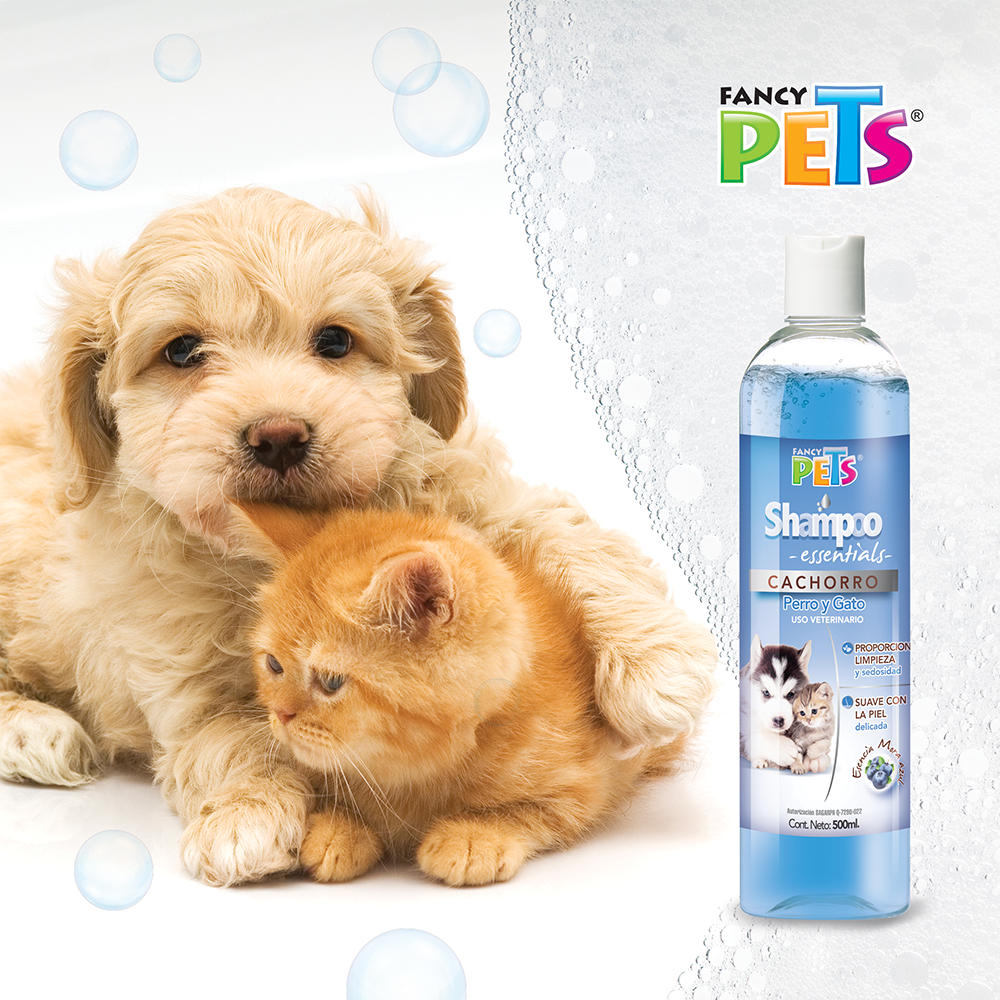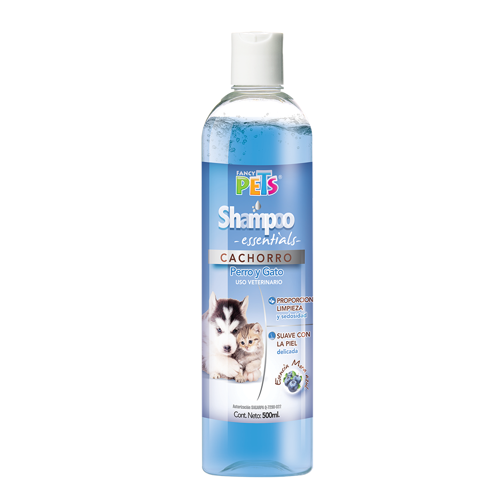 El Shampoo Essentials para Cachorro de Fancy Pets limpia y suaviza al mismo tiempo el pelo, con ingredientes que cuidan su piel y proporcionan sedosidad facilitando el cepillado. No irrita la piel ni los ojos del cachorro.