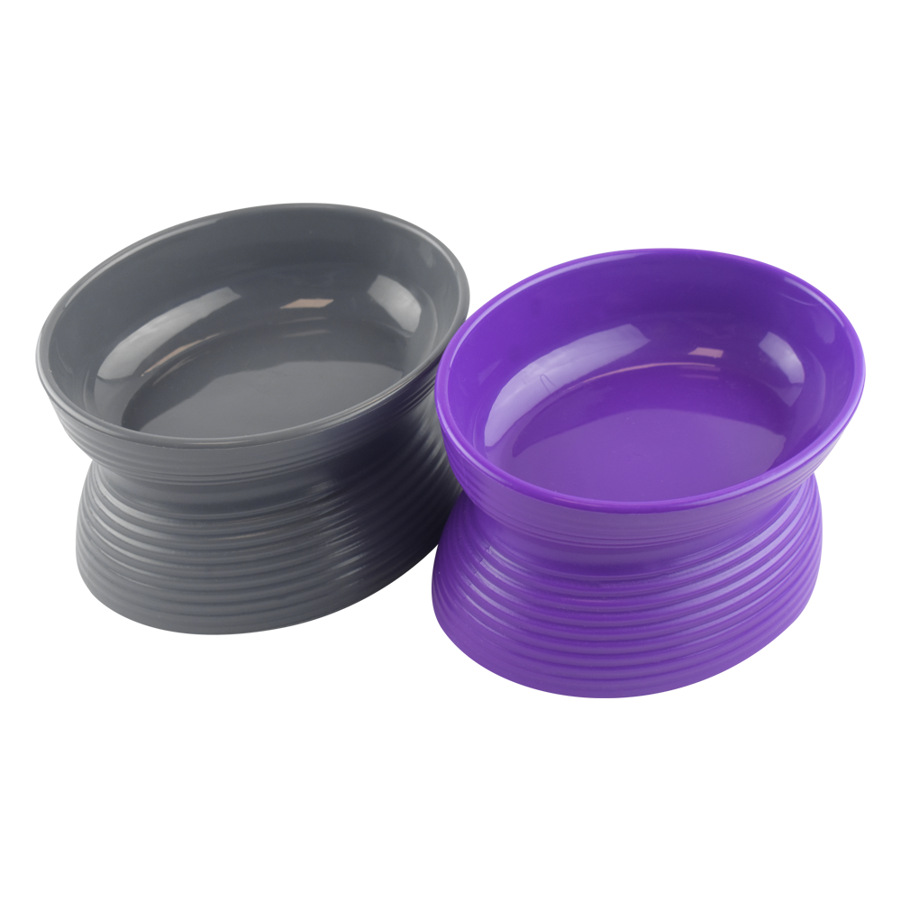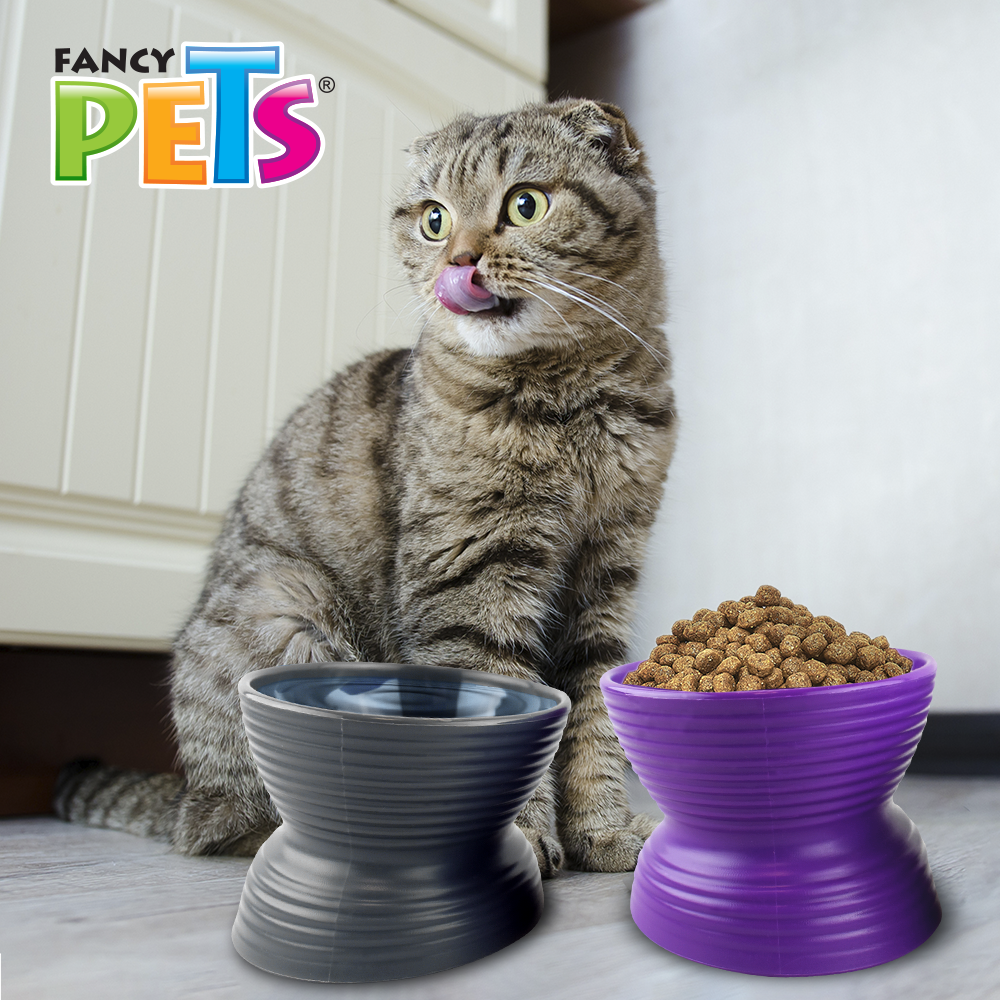 El set de 2 platos para gato de Fancy Pet® incluye platos elevados con inclinación que permite colocarlo a la misma altura que el codo del gato. De esta manera, el gato no necesita agacharse, bajar el cuello o torcer la columna para ingerir la comida.
