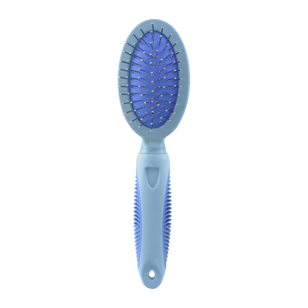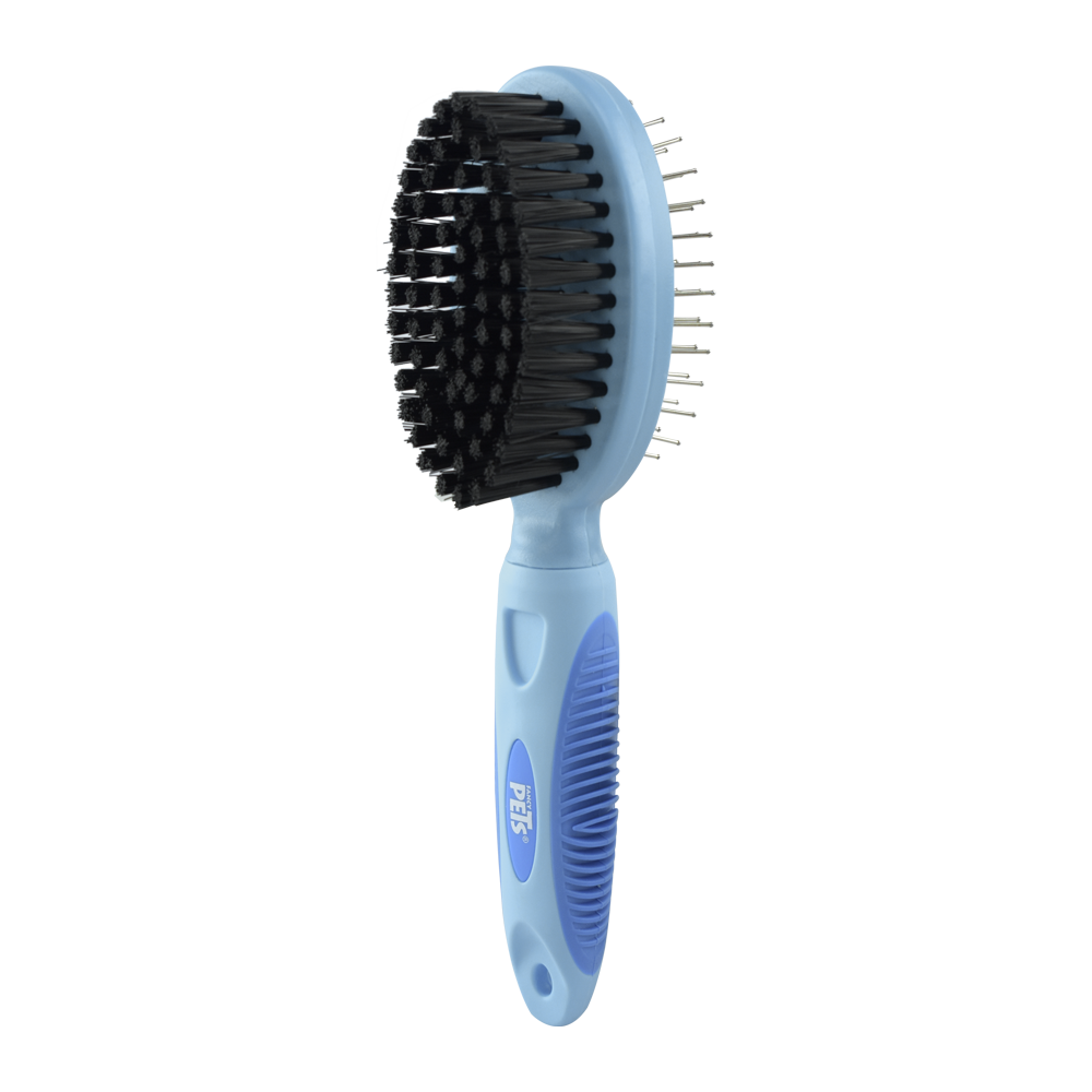 Cepillo doble 2 en 1, combinado chico (cerdas y púas de acero). Para el cepillado general de la mayoría de las razas. Con mango ergonómico.
