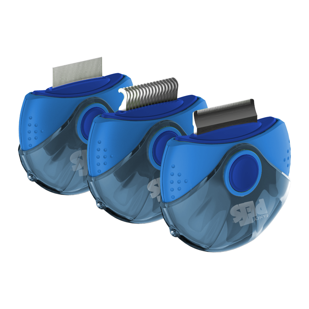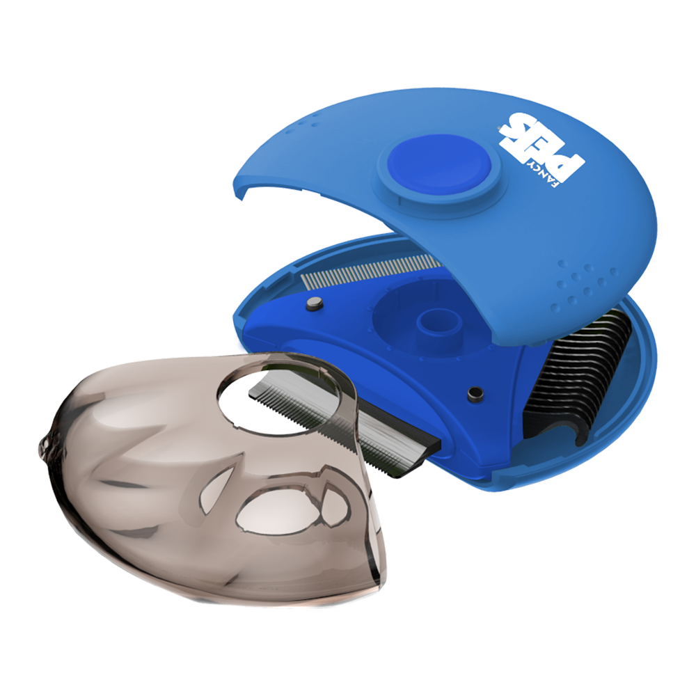 Peine giratorio 3 en 1 de Fancy Pets Diseño rotativo que al presionar el botón te permita girar y sacar la herramienta que desea utilizar Peine antipulgas Rompenudos Deslanador para época de muda Beneficios: Desenreda y elimina nudos difíciles Ayuda a retirar hasta un 90% de pelo suelto Ayuda a retirar molestos ectoparásitos