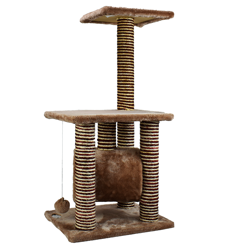Cueva en forma de cilindro, postes rascadores, juguete colgante