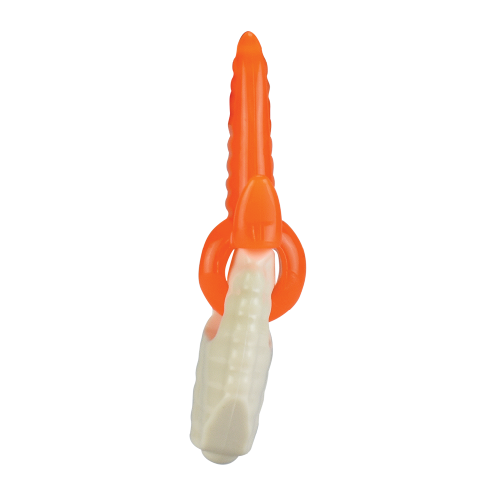 La textura, los bordes y la dureza del juguete contribuye con la higiene dental masajeando las encías, eliminando la placa dentobacteriana y previniendo la formación de sarro.