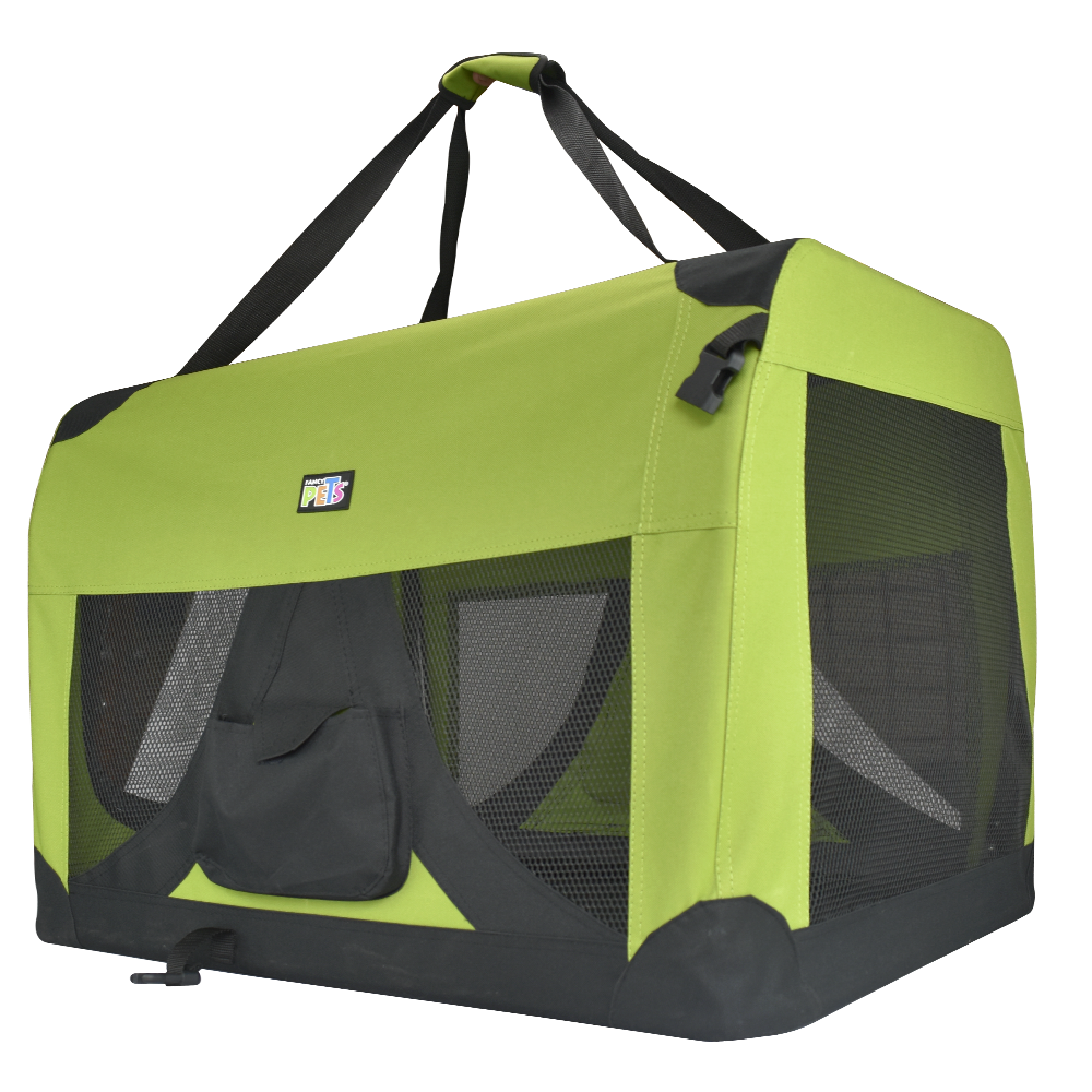 Perrera chica Style color verde. Características: Estructura metálica y plegable con mecanismos sencillos de fijación Puerta frontal y superior con malla y cintas Bolsas laterales para guardar accesorios Beneficios: Ideal para la comodidad de tu mascota en todo momento Práctica y fácil de transportar Ideal para día de campo y vacaciones
