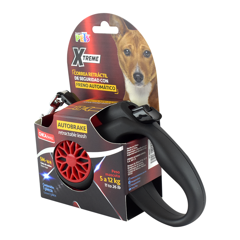 La correa retráctil con freno automático de la línea Xtreme de Fancy Pets®, se activa con el simple tirón de la mascota y sin necesidad de apretar un botón. Así, es posible ajustar la distancia entre tu perro y tú. Al absorber impactos, protege al dueño y al cuello de la mascota de cualquier tipo de lesión.