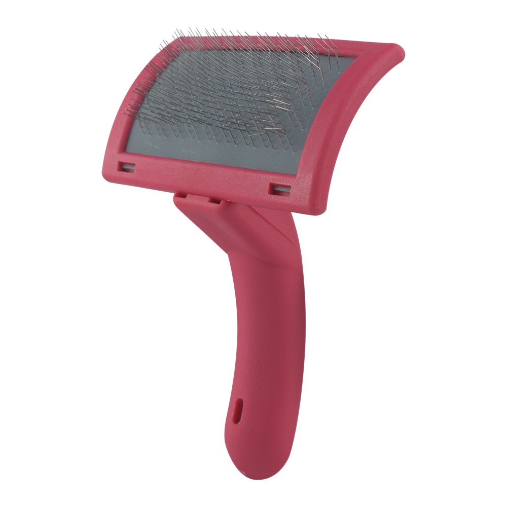 Carda chica color roja para mascota (granel) Beneficios: Cerdas metálicas flexibles de gran resistencia que atrapan el pelo muerto y lo desenredan con facilidad Ideal para razas de pelo medio, largo, liso o rizado.