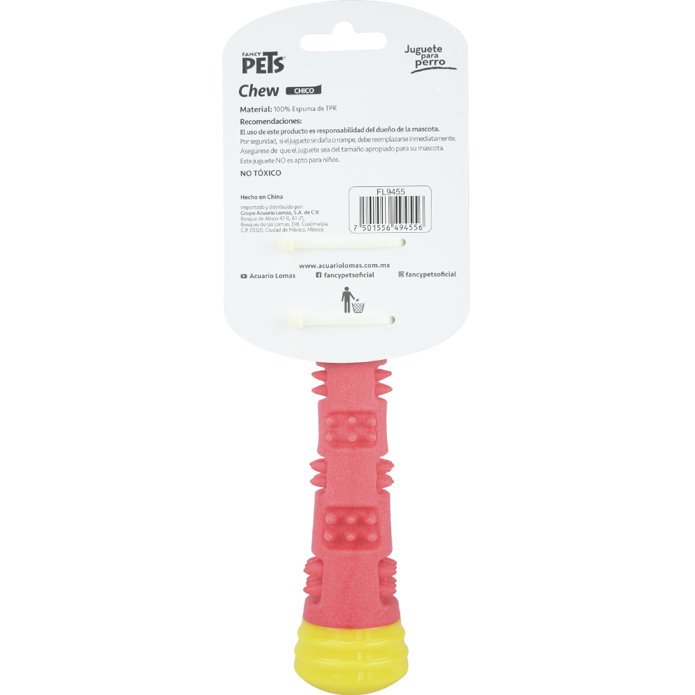 Si el juguete se daña o rompe, debe reemplazarse inmediatamente Asegúrate de que el juguete sea del tamaño apropiado para tu mascota Cuando juegues con tu mascota, realiza tirones de lado a lado y nunca de arriba hacia abajo Cambia o esconde el juguete periódicamente para mantener su interés Juega con tu mascota al menos una hora al día en lapsos de 10 minutos, variando el horario EL USO DE ESTE PRODUCTO ES RESPONSABILIDAD DEL DUEñO DE LA MASCOTA Y DEBE SER UTILIZADO BAJO SUPERVISIóN.