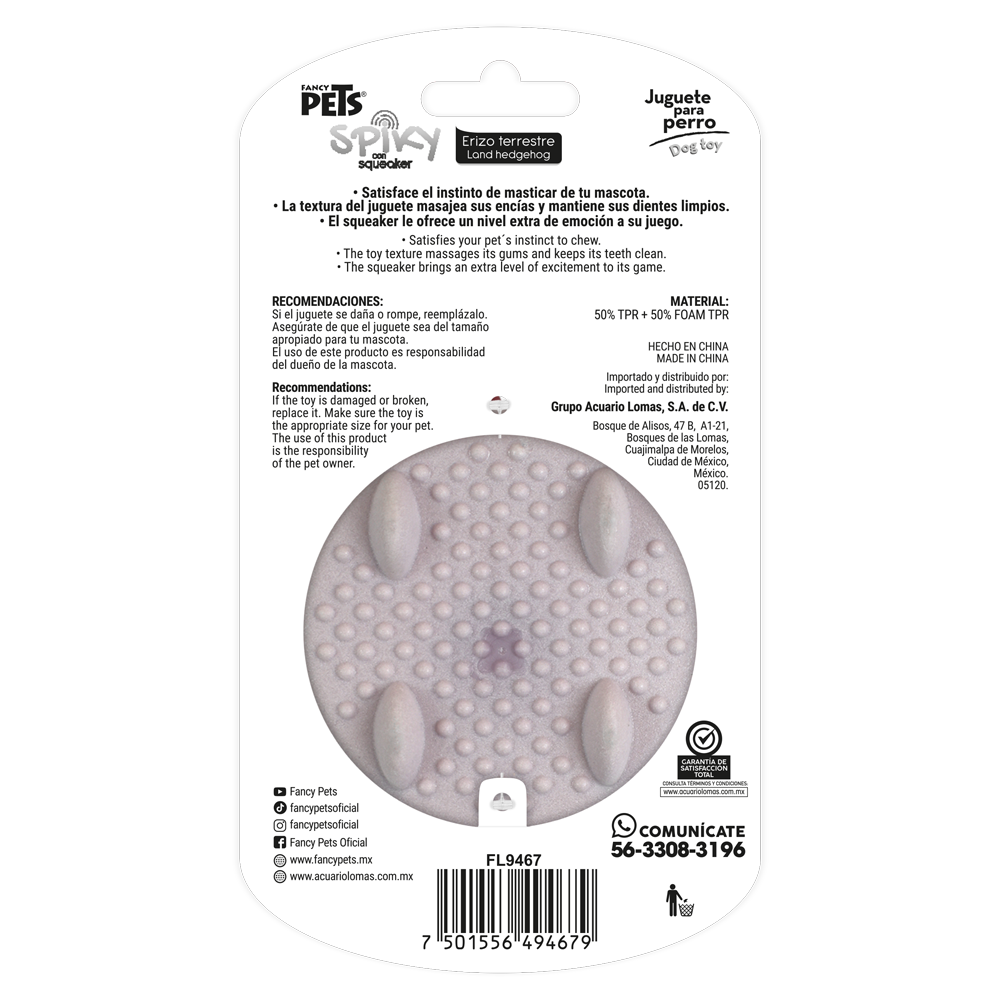 Los juguetes de la línea Spiky de Fancy Pets, son juguetes para perros que tienen una necesidad natural de morder y masticar para mantener sus dientes y encías saludables, así como para liberar estrés. Son juguetes con texturas y materiales resistentes pueden ayudar a satisfacer esta necesidad de morder de manera segura, con un squeaker integrado puede proporcionar entretenimiento adicional, ya que el sonido puede atraer su atención.